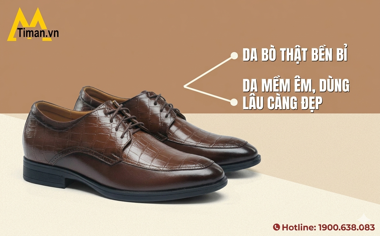 Trong thế giới thời trang nam giới, giày nam da bò luôn được xem là lựa chọn thể hiện phong cách lịch lãm và sự chỉn chu của phái mạnh. Thế nhưng nhiều quý ông lại thường xuyên gặp rắc rối khi chọn giày. Có người chọn đôi giày kiểu dáng đẹp nhưng chất lượng kém nên chỉ sau vài tháng đã bong tróc và xuống cấp. Có người ưu tiên giá rẻ nhưng nhanh chóng hối tiếc vì giày không giữ được form và làm mất đi sự tự tin trong giao tiếp hàng ngày. Và ngay sau đây chúng ta sẽ cùng tìm hiểu những kiểu giày nam da bò chính hãng cùng những đặc điểm nổi bật giúp mẫu giày này trở thành món đồ đáng tin cậy của mọi quý ông.