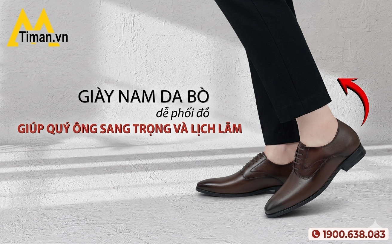 Giày nam da bò luôn mang đến vẻ chỉn chu và giúp nam giới nâng tầm phong cách trong nhiều bối cảnh khác nhau. Nếu bạn muốn tìm một đôi giày da bò bền đẹp, giữ dáng tốt và được tư vấn kỹ từng chi tiết, bạn có thể ghé Timan để được hỗ trợ chọn kiểu dáng, kích cỡ và màu sắc phù hợp. Đội ngũ tại Timan luôn sẵn sàng giúp bạn tìm ra đôi giày hợp chân mang vào gọn gàng và tự tin mỗi ngày.