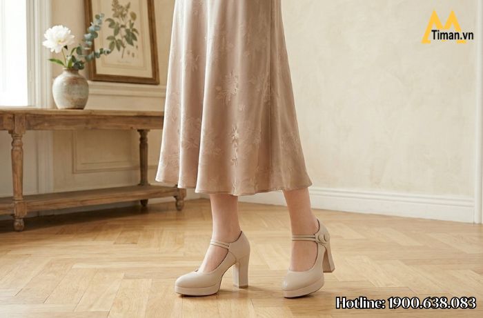 Những chị em muốn cải thiện chiều cao để tự tin hơn khi đi tiệc hay tham dự sự kiện có thể tham khảo giày nữ đế vuông TM-CG501. Thiết kế gót trụ cao 9cm giúp tôn dáng rõ rệt nhưng vẫn giữ được sự ổn định, mang lại cảm giác vững vàng khi di chuyển.